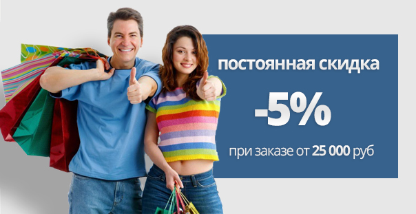 Для всех покупателей сделавших заказ более чем на 25000 руб, будет действовать постоянная скидка 5% на следующую покупку.